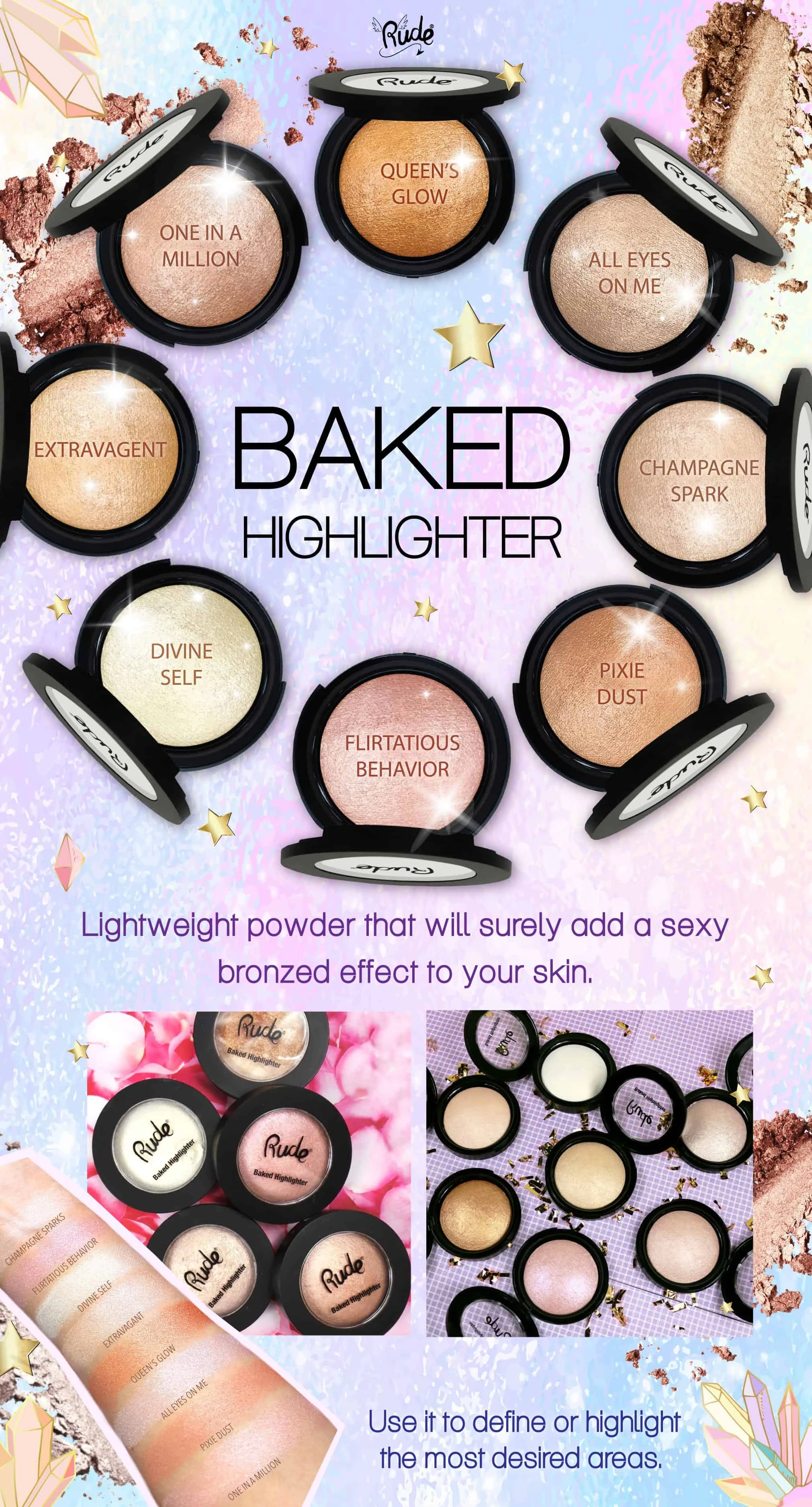 Pečeni hajlajter za lice i telo je lagani puder za šminkanje sa bronzanim efektom na koži. Dodajte predivan glamurozan dodir Vašem izgledu sa našim hajlajterom za iluminaciju.