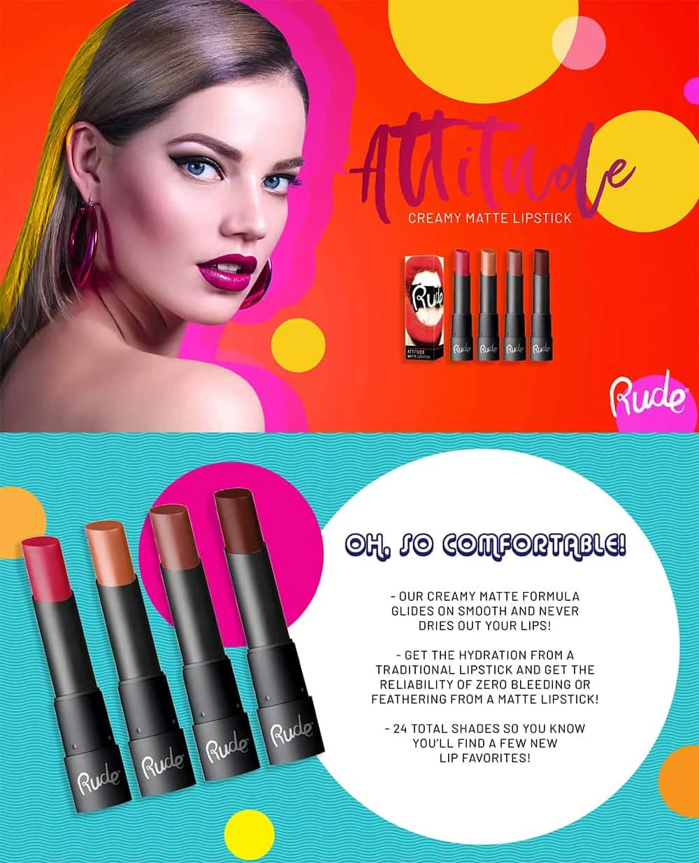 Mat ruževi za usne su na vrhu popularnosti već nekoliko sezona. Omogućavaju da šminka izgleda savršeno tokom celog dana. Izdvoj se iz mase i pokaži svoje pravo lice sa Rude Attitude mat ružem.