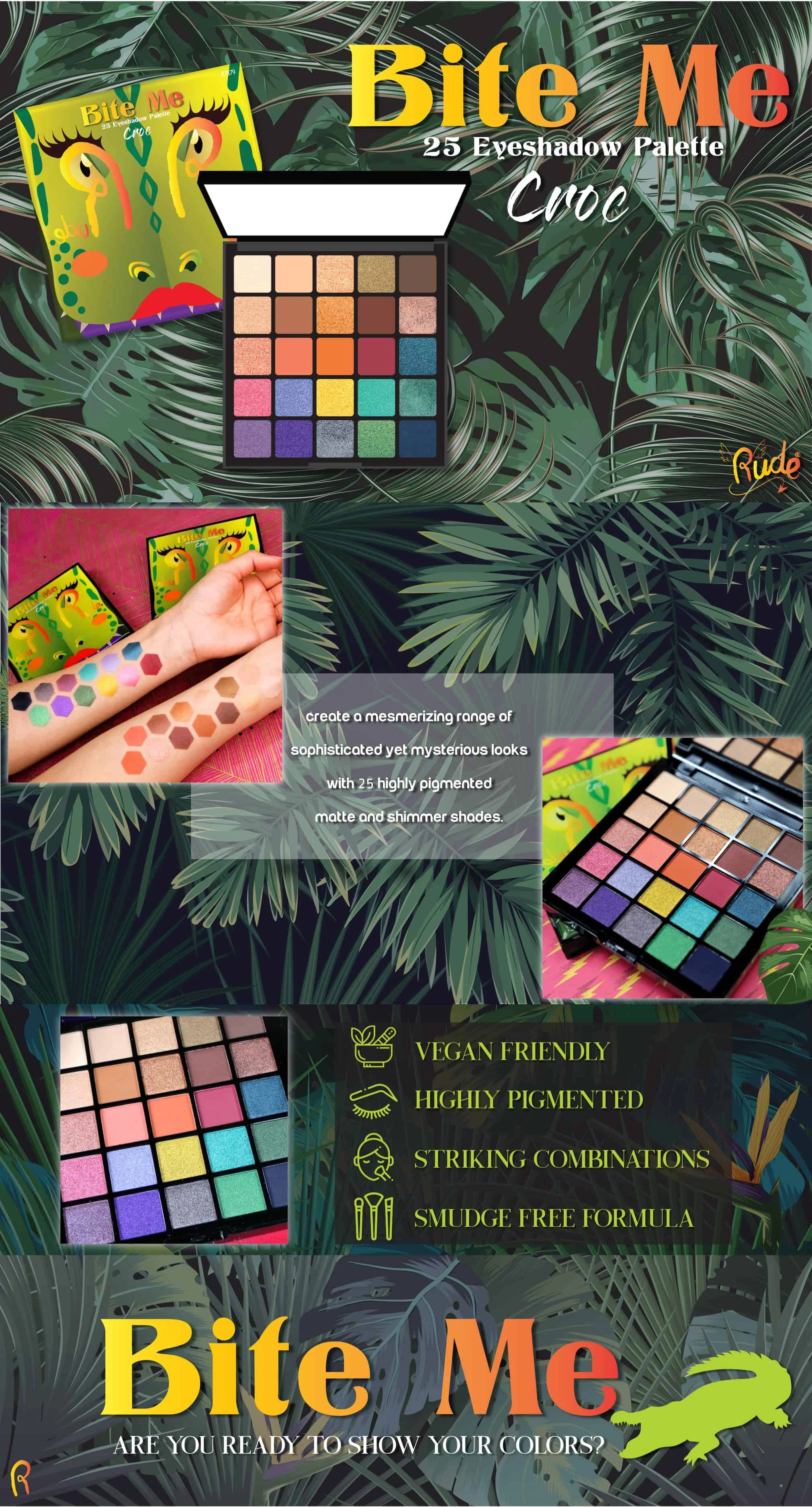 Paleta senki za oči Croc idealna je za sofisticiran i misteriozan make up. Sa 25 visoko pigmentiranih mat i svetlucavih nijansi moguće je odvažnije šminkanje. Svaka senka za oči se može nositi sama ili slojevito izgled koji obara sa nogu. Da li ste spremni da pokažete svoje boje?