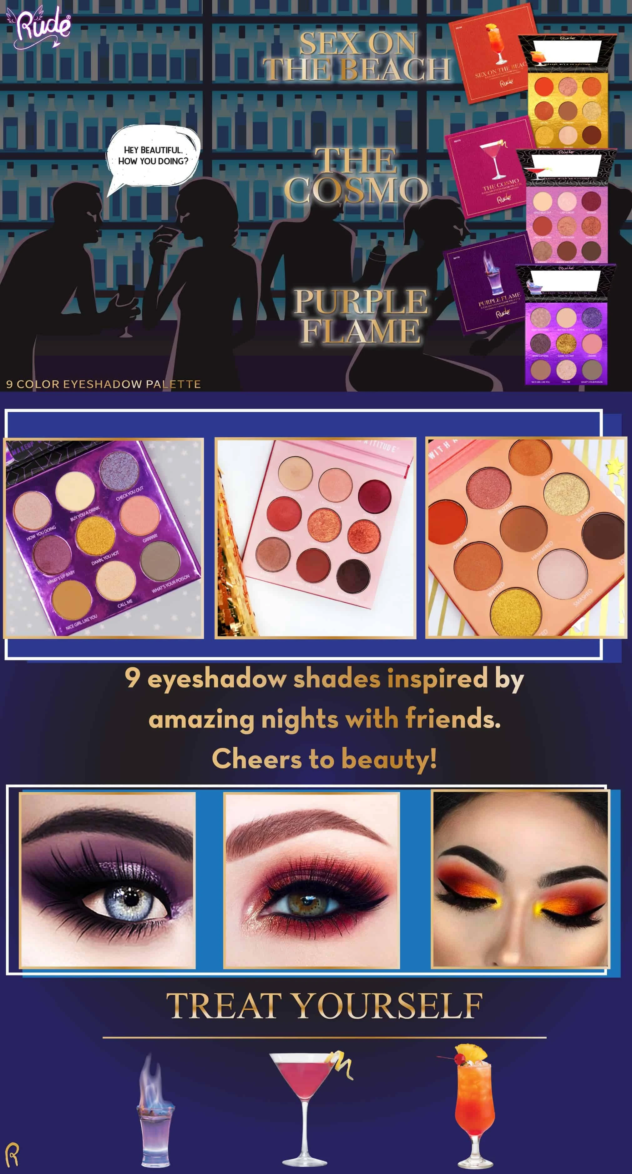 Paleta senki za oči Purple flame je iz linije Coctail Party proizvoda. Predivna paleta od 4 mat i 5 šljokičastih nijansi senki za neodoljivu šminku na očima. Stvorite domet make up-a od šarmantnog do dramatičnog sa ovim senkama. Ovaj spektar boja i sama paleta inspirisana je neverovatnim noćima provednih u pijuckanju sa prijateljima! Nazdravimo lepoti!
